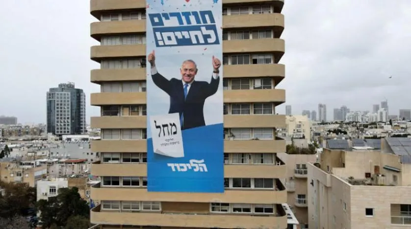 گزشتہ روز تل ابیب میں نیتن یاہو کے انتخابی بینر کو دیکھا جا سکتا ہے (اے ایف پی)