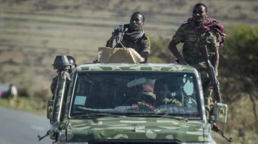 تیغرائی علاقہ میں اغولا کے شمالی جانب کے قریب ایتھوپیائی حکومت کے لشکر کو دیکھا جا سکتا ہے (دستاویز – اے پی)