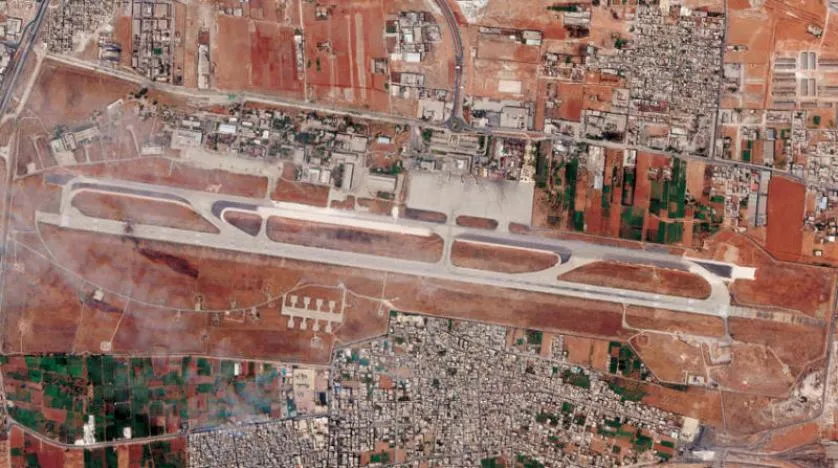 1 ستمبر کے دن حلب بین الاقوامی ہوائی اڈے پر اسرائیلی حملے کے بعد ہونے والے نقصان کو ظاہر کرنے والی سیٹلائٹ تصویر دیکھی جا سکتی ہے (اے ایف پی)