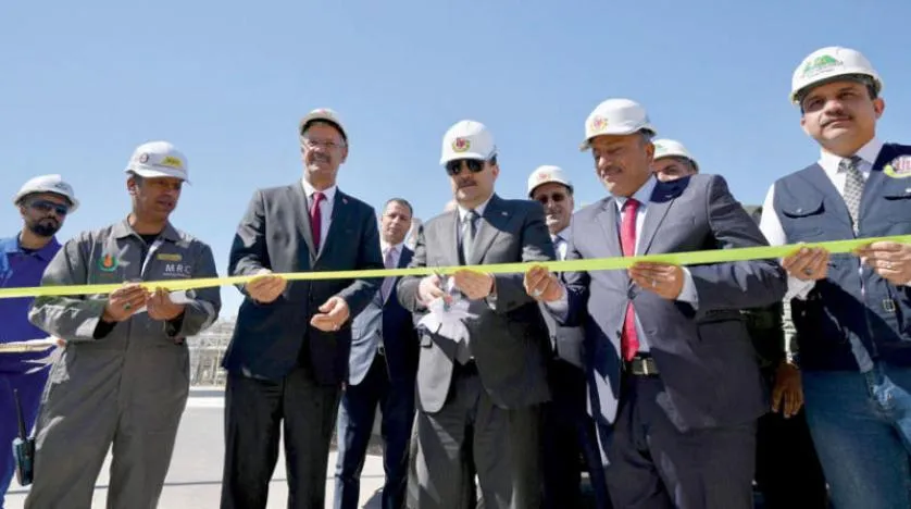 عراقی وزیر اعظم محمد السودانی (درمیان میں) کربلا آئل ریفائنری کی افتتاحی تقریب کے دوران (اے ایف پی)