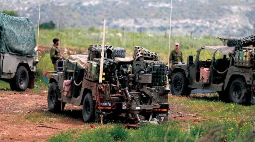 اسرائیلی فوجی الجلیل کے علاقے پر میزائل داغے جانے کے بعد لبنانی سرحد سے ملحقہ المالکیہ بستی کے قریب ایک مقام پر (ای پی اے)